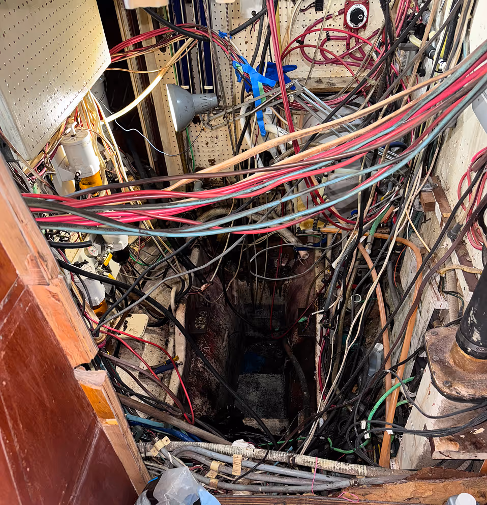 At the heart of the system is a 60kWh 48VDC battery bank that powers all hotel loads and propulsion, supported by independent batteries for the bow thruster, electronics, and generator start.